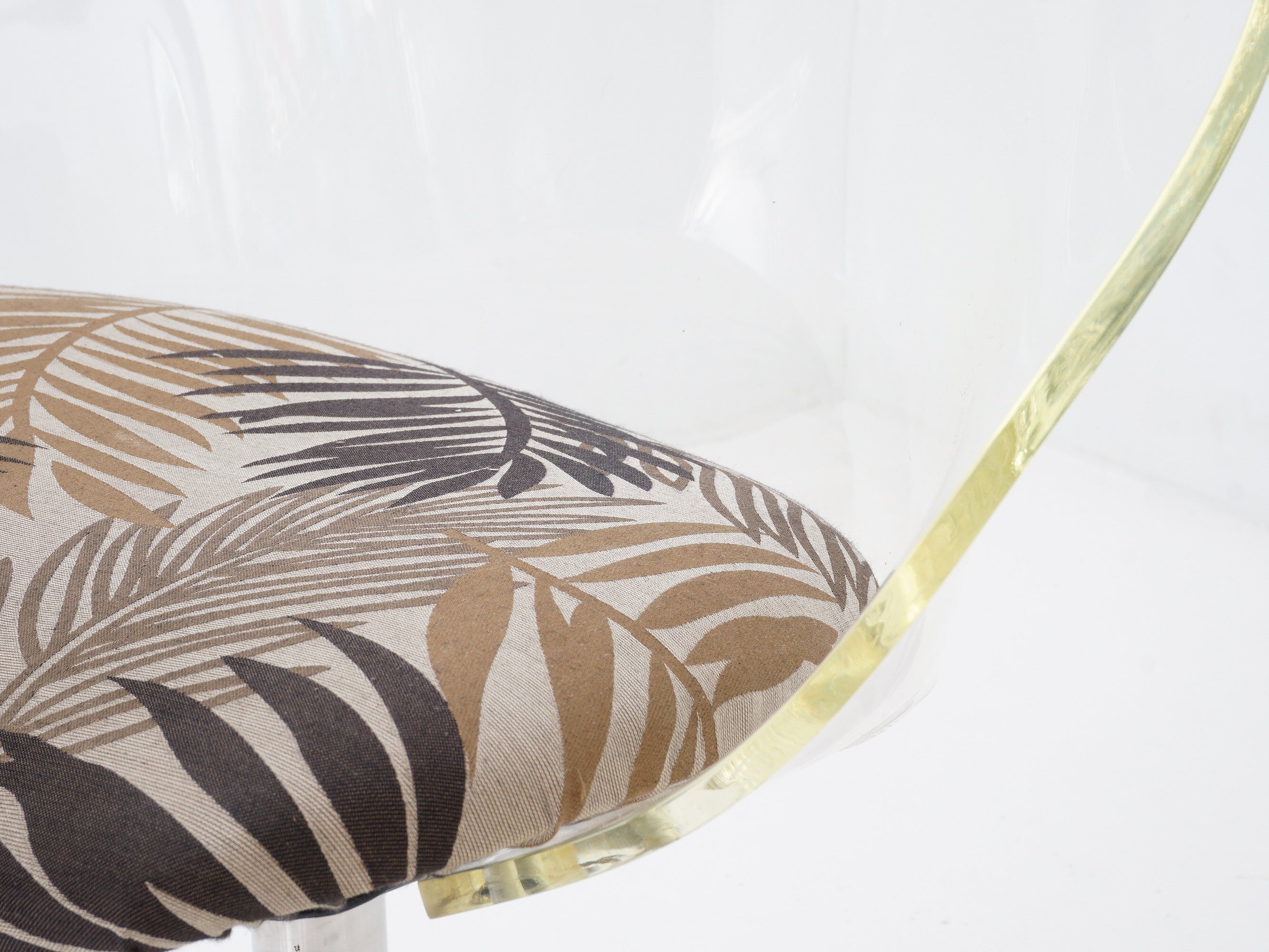 A chair like a hot guy with glasses - it's all clear and shiny on the outside, but you know there's some substance and intelligence there too, with that fancy palm tree fabric.